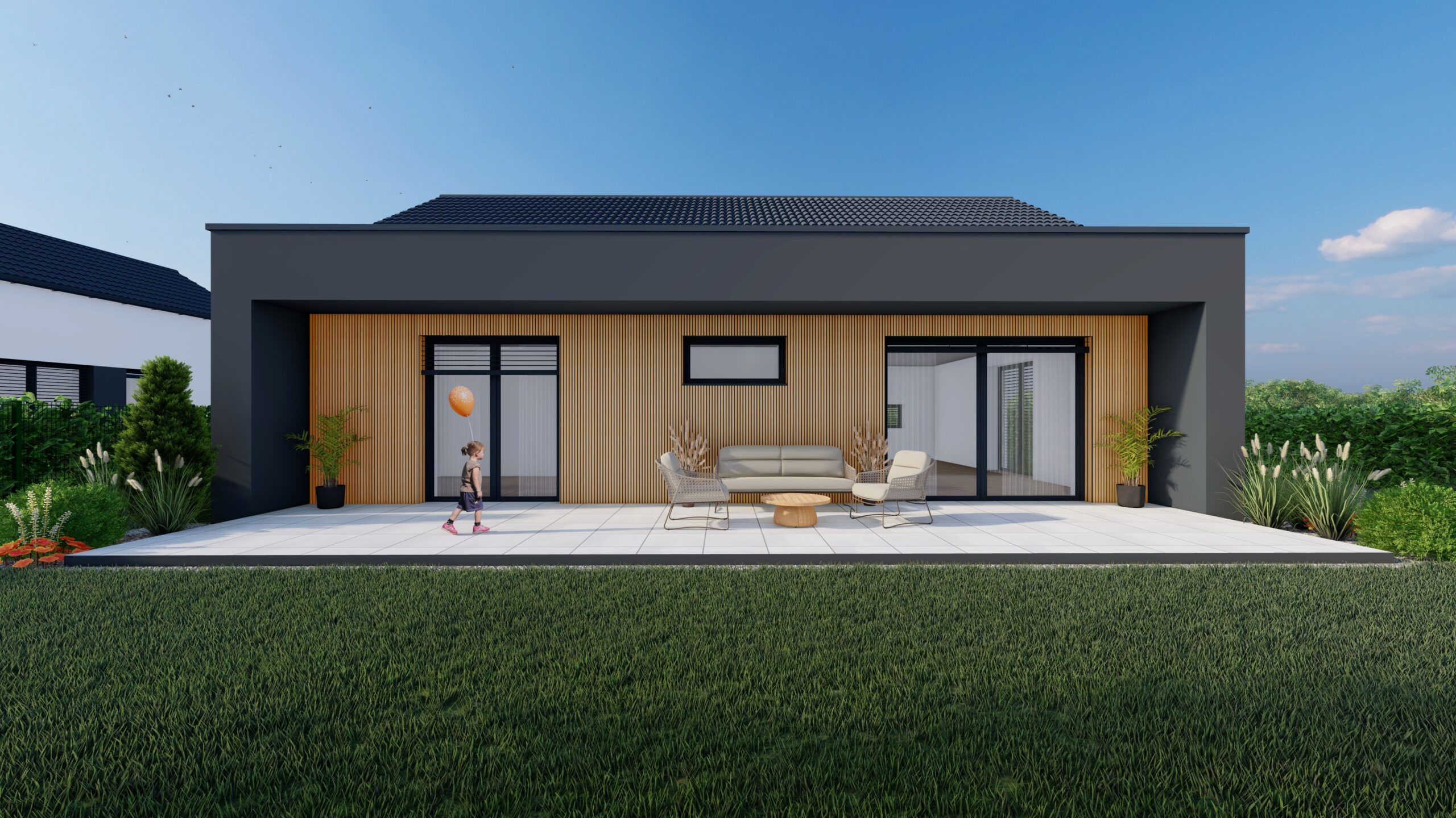 Moderný 3-izbový dom s nadčasovou architektúrou, množstvom prirodzeného svetla a premyslenou dispozíciou pre každodenný rodinný život. Postavený z vysokokvalitných materiálov s maximálnym dôrazom na kvalitu a detail.